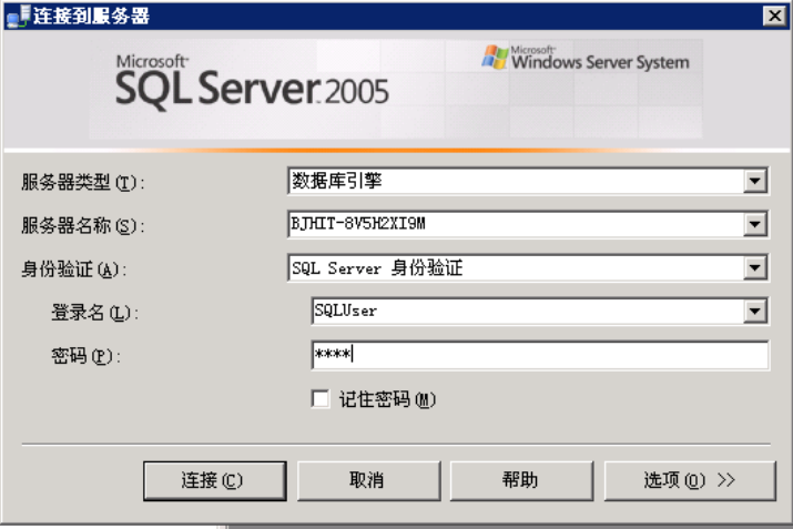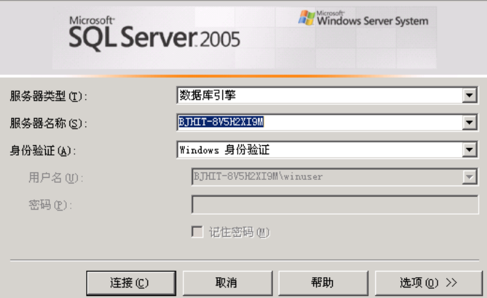 ①在桌面上单击“开始”,选择“程序”→“Microsoft SQL Server 2005” →“SQL Server Management Studio”,出现“连接到服务器”对话框。