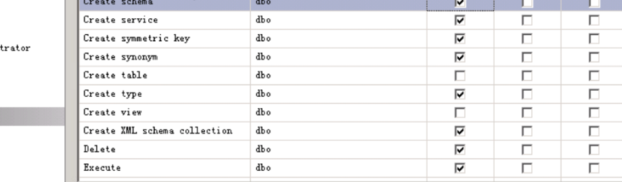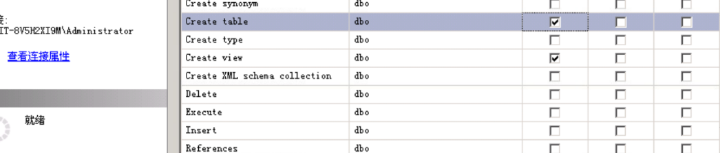 在SQLUser一栏中,则选择除“创建表”和“创建视图”以外的选项
