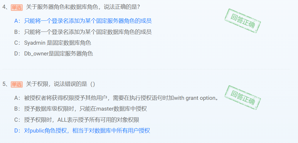 数据库用户,指有权限能操作数据库的用户;数据库用户对应于服务器登录名以便登录者可以操作数据库;数据库角色,指一组固定的有某些权限的数据库角色;数据库角色可以添加,可以定制不同权限;服务器登录名需要于数据库的用户映射后才拥有操作数据库的权限;数据库用户属于某组数据库角色以获取操作数据库的权限