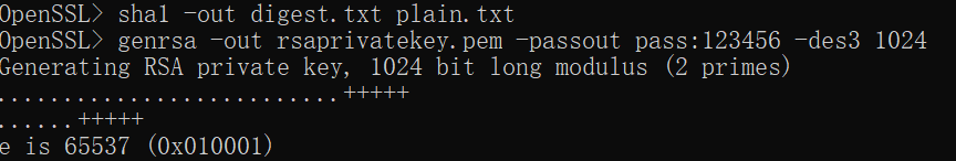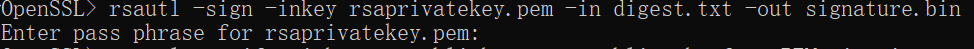(3)利用上述私钥对摘要digest.txt进行签名,生成签名文档signature.bin