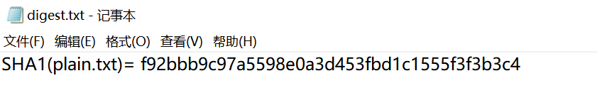- 计算plain.txt的哈希值,输出到文件digest.txt。