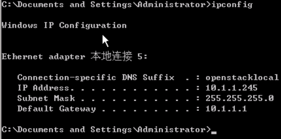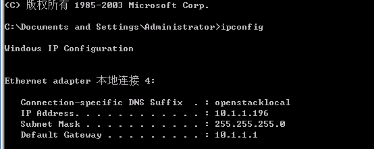 1、远程桌面方式登录到CA服务器,在CMD下查看本机IP地址: