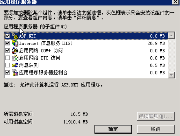 双击“应用程序服务器”,选中“ASP.NET”与“Internet信息服务(IIS)”,如下图: