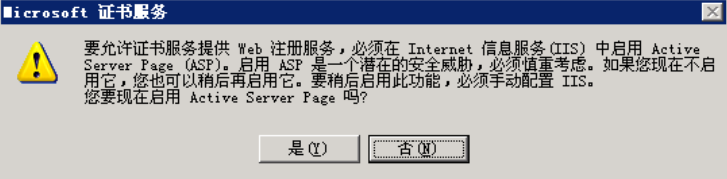 在安装完成后会提示启用Active Server Page,点击“确定”
