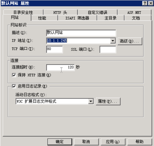 右键“默认网站”,选择“属性”: