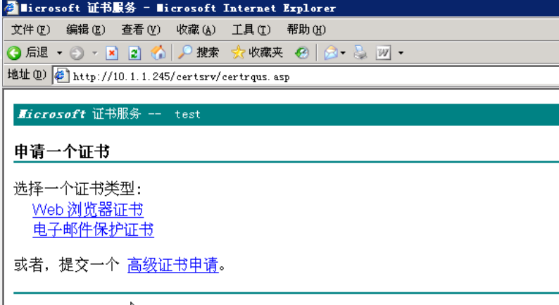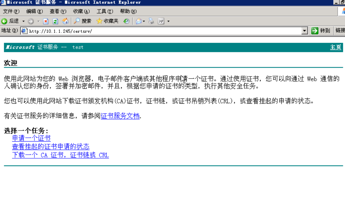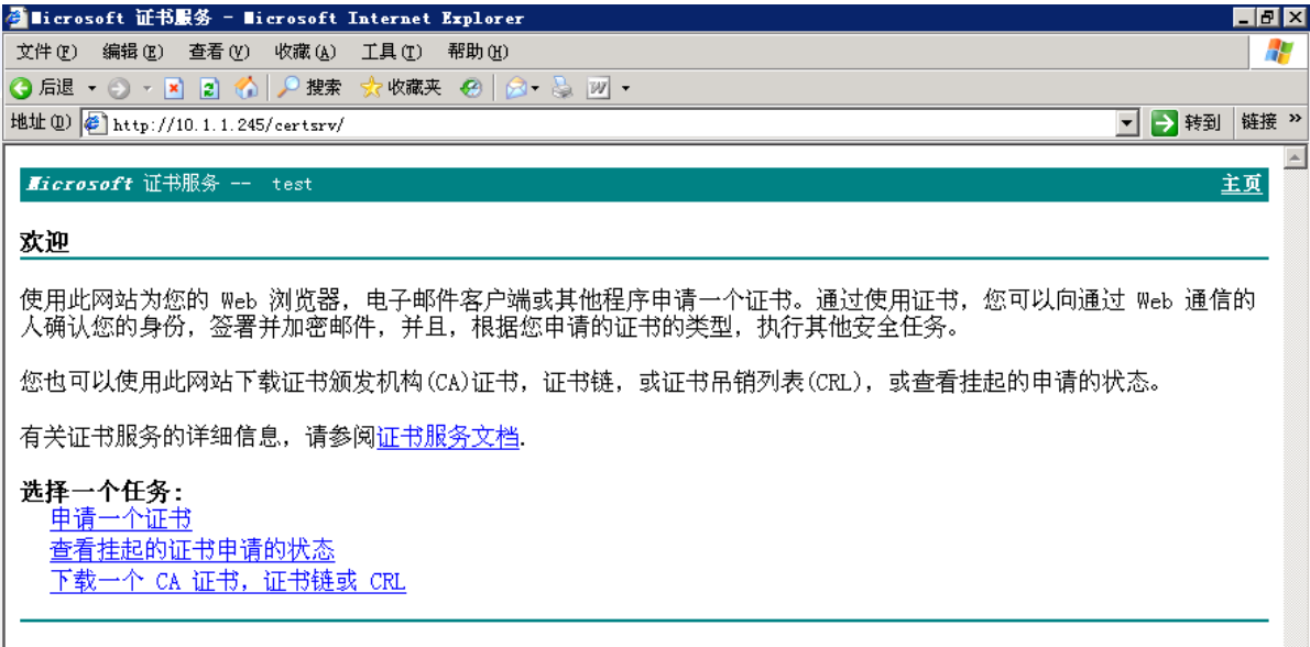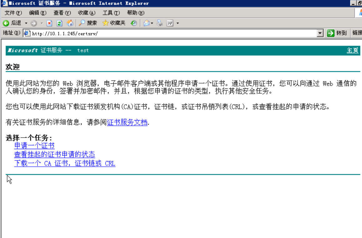 打开浏览器输入 http://10.1.1.245/certsrv/ 可以浏览证书服务器