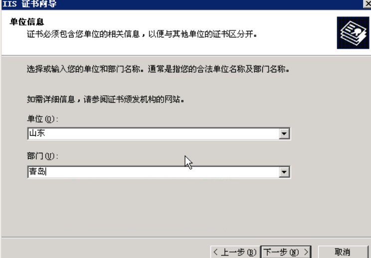在下一步中输入证书的相关信息: