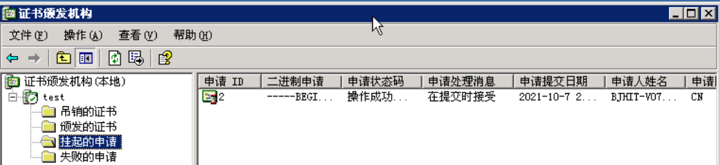 查看挂起的证书申请的状态
