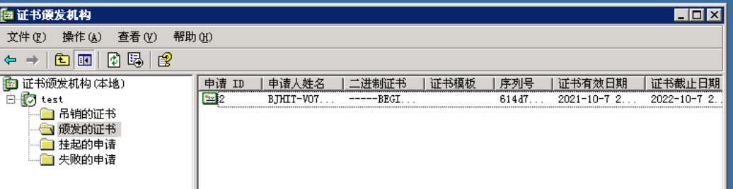 颁发后可以在“颁发的证书”中看到,如下图: