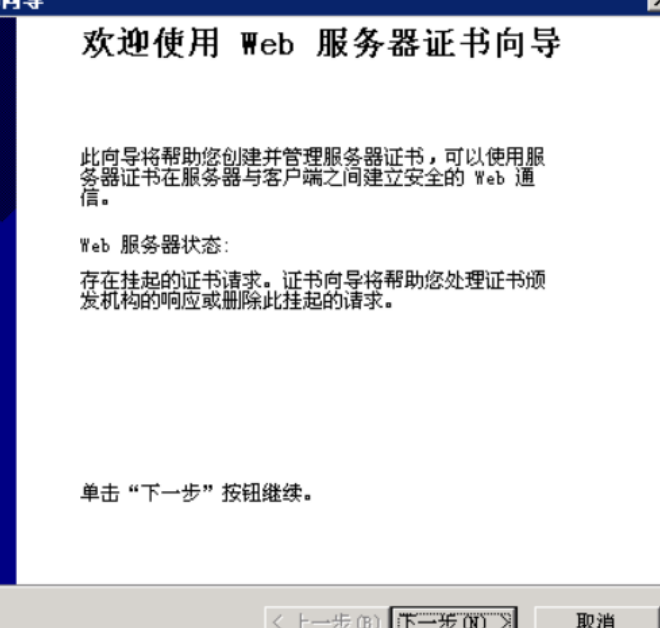 进入Web服务器证书向导,点击下一步: