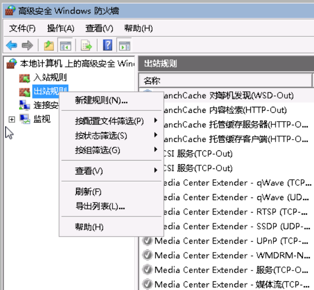 1)在高级安全Windows防火墙中,是支持双向保护的,也就是说它将防火墙的规则分为两个部分,分别是入站规则和出站规则。入站就是外网访问本机,出站就是本机访问外网。高级安全Windows防火墙默认是对内阻止,对外开放。
