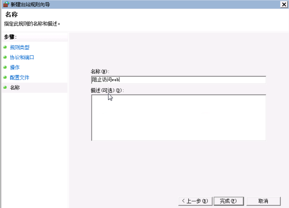 设置出口规则为“阻止对80端口的TCP连接”(即禁止访问Web服务器)。分为如下若干小步骤: