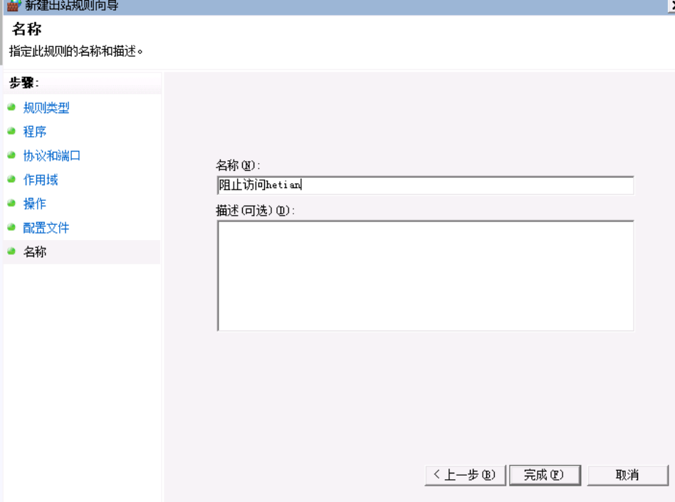 5)在“名称”界面,为该规则指定一个名称和描述。