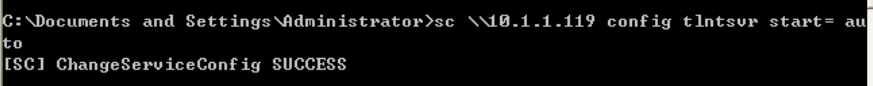命令:sc \\10.1.1.119 config tlntsvr start= auto