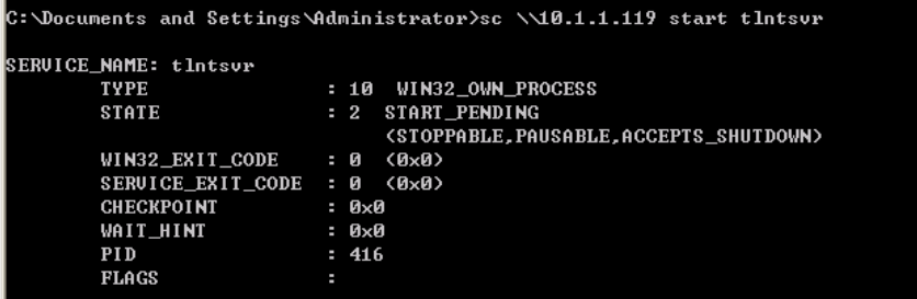 命令:sc \\10.1.1.119 start tlntsvr