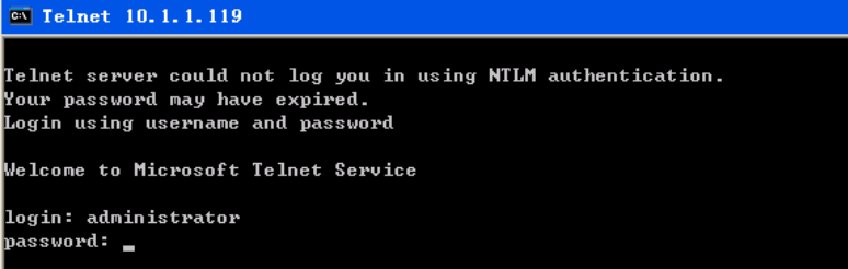 (8)新建一个cmd环境进行telnet登录:telnet 10.1.1.119