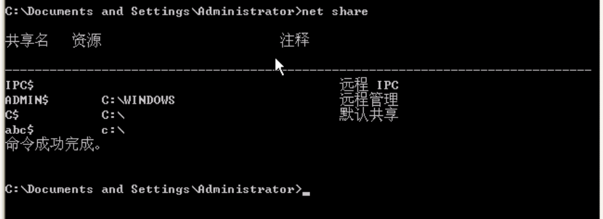 命令:net share abc$=c:
