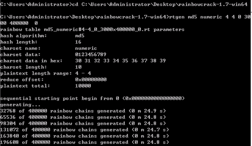 使用命令:rtgen md5 numeric 4 4 0 3000 400000 0