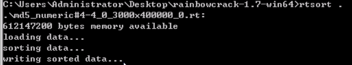 切勿中断rtsort程序; 否则被分类的彩虹表可能会被损坏。