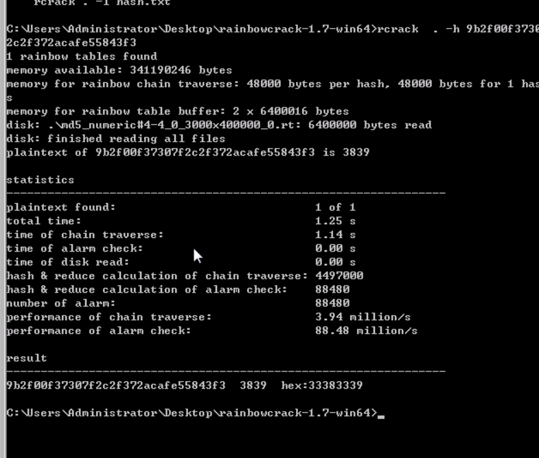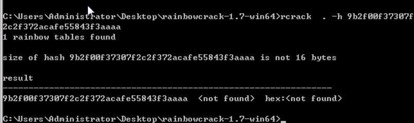 对于单个的哈希值,我们可以直接用rcrack.exe . -h hashnum来进行破解: