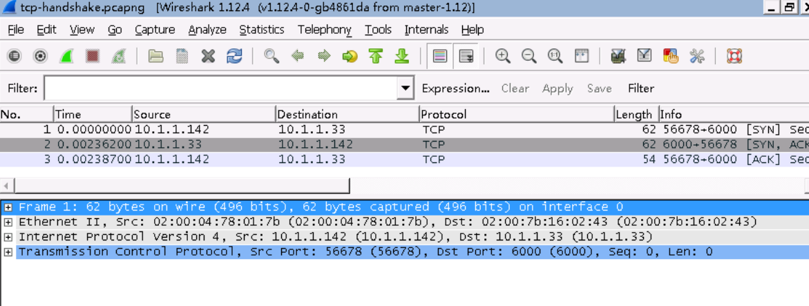 TCP三次握手是理解TCP协议最重要的部分,下面我们就以tcp-handshake.pcapng捕获文件为例,来分析TCP的三次握手