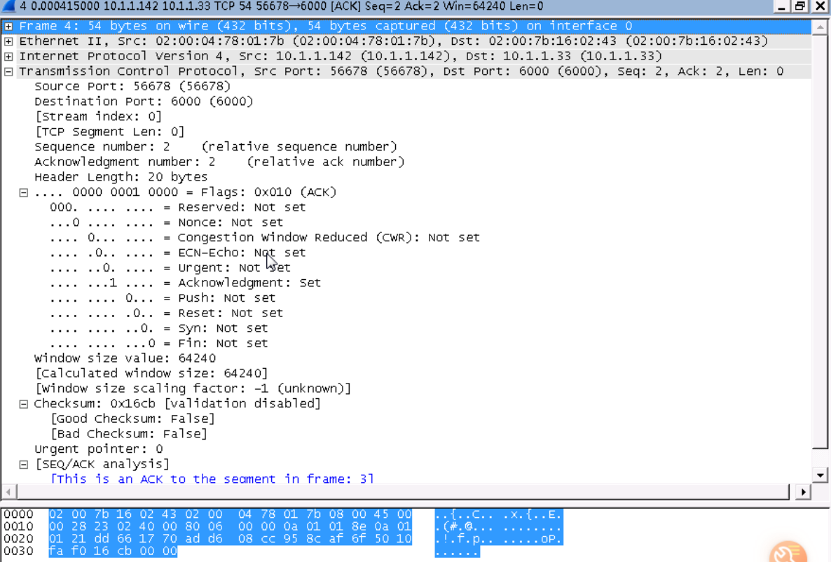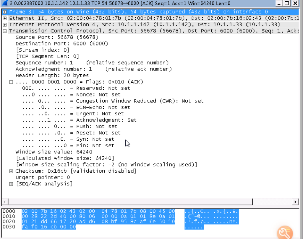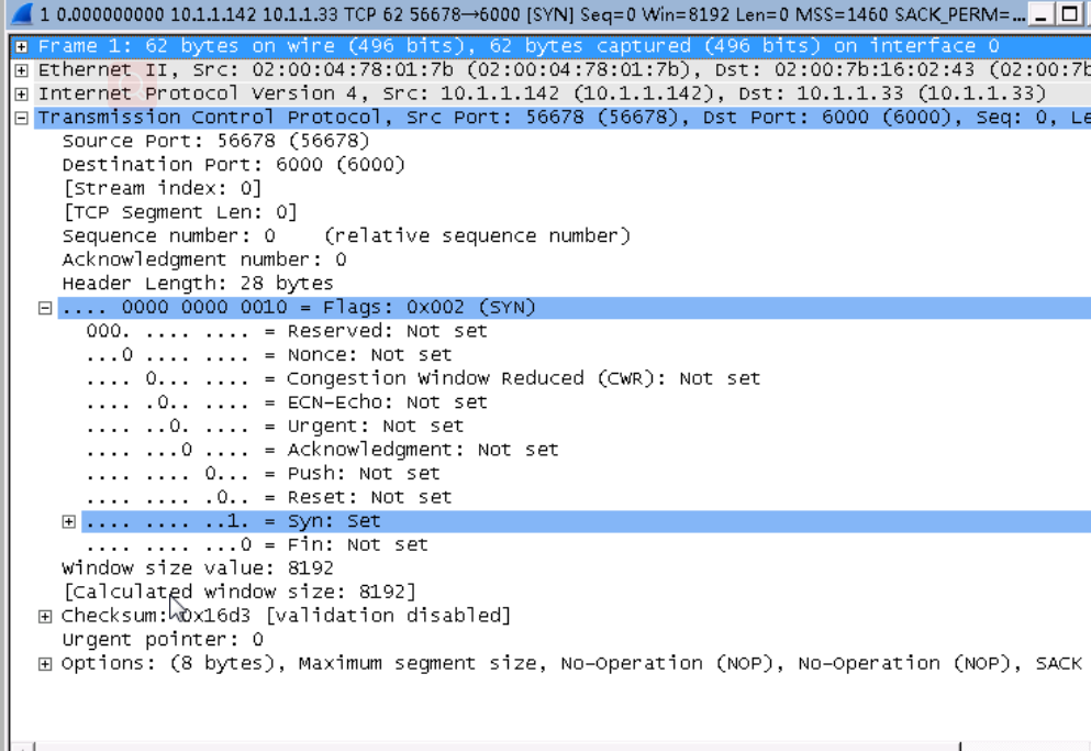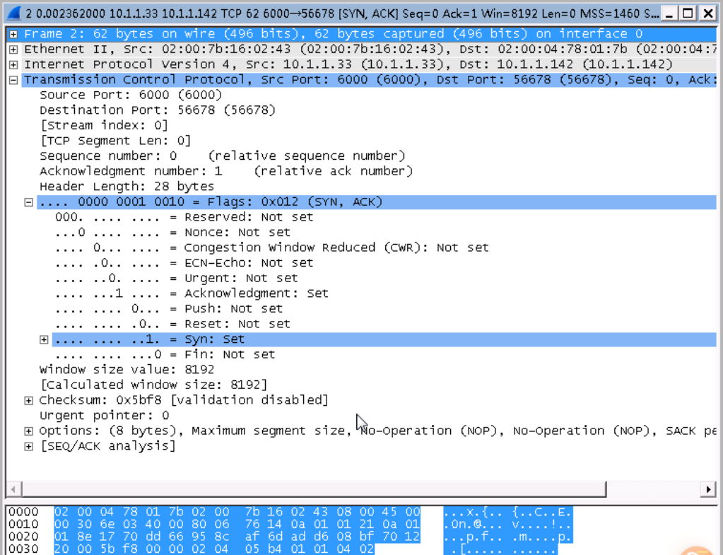 TCP第一次握手,捕获的数据包信息如下所示