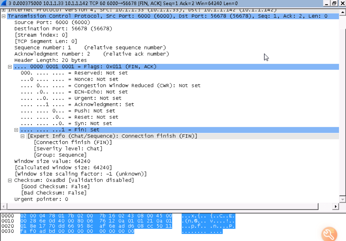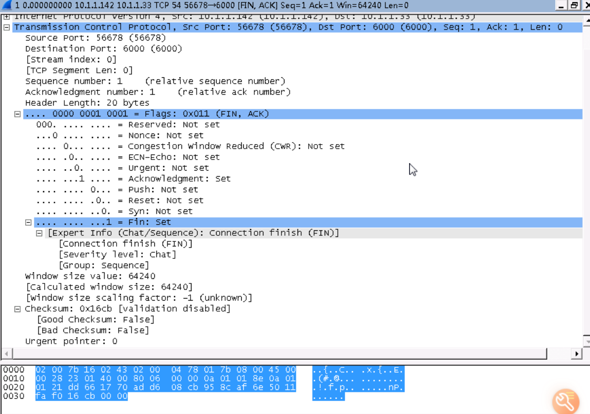 TCP第一次断开连接的数据包,如下: