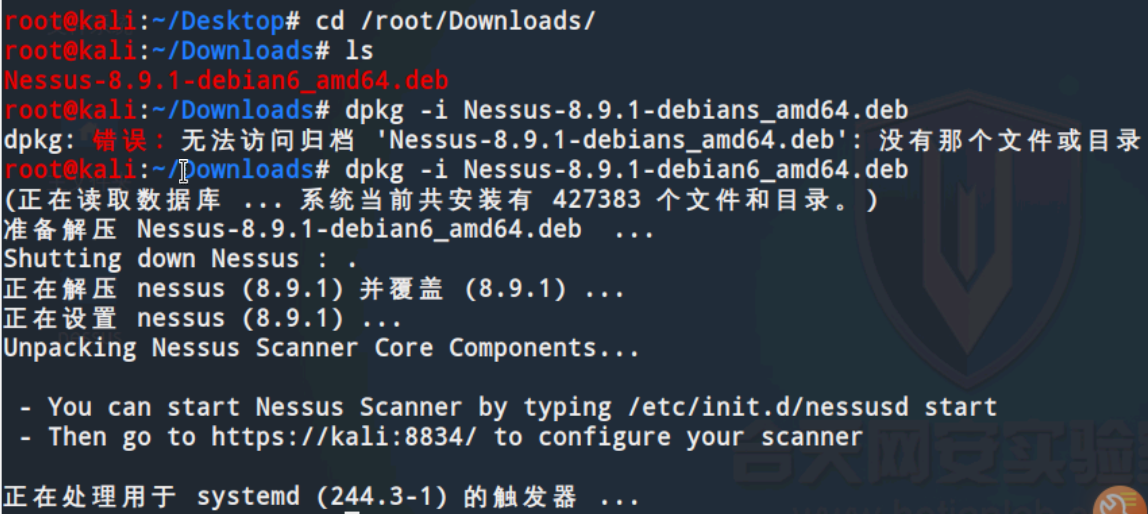 dpkg -i Nessus-8.9.1-debian6_amd64.deb 安装Debian安装包