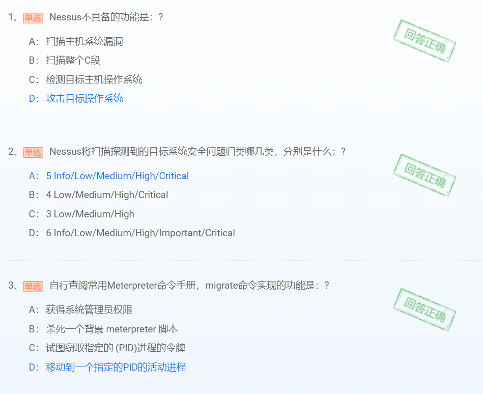 通过该实验熟悉Nessus漏洞扫描工具的安装和主机漏洞扫描的方法,学会利用Nessus扫描结果筛选合适的Metasploit攻击模块进行安全测试、攻击。
