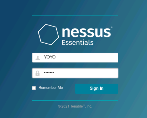 访问Nessus控制端https://127.0.0.1:8834/。输入安装时设置的账号信息(密码在桌面nessus文件夹内)。