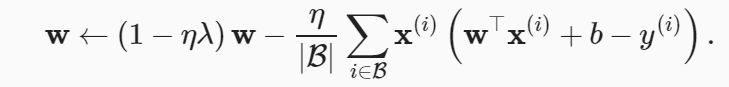 L2正则化回归的小批量随机梯度下降更新如下式: