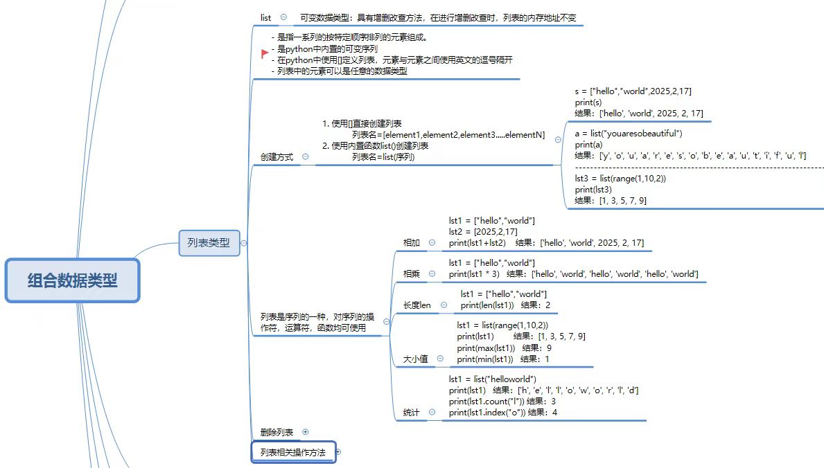 创建列表的方式:1)使用“直接创建 2)使用内置函数list()创建列表的相关操作方法-