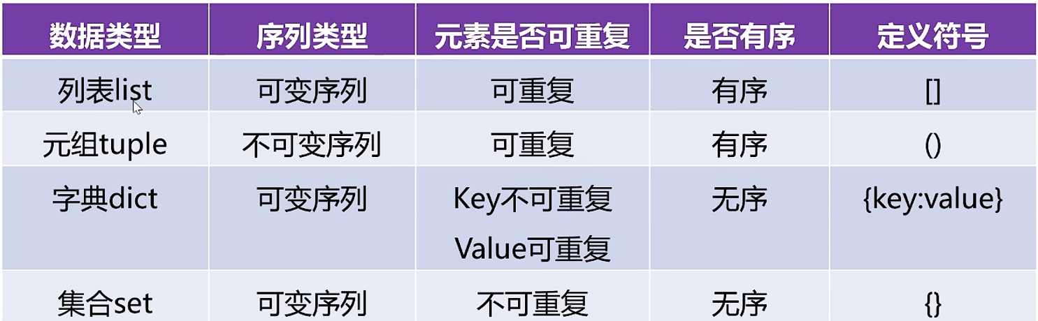 列表、字典、集合都是Python中的可变数据类型,元组是Python中的不可变数据类型 -