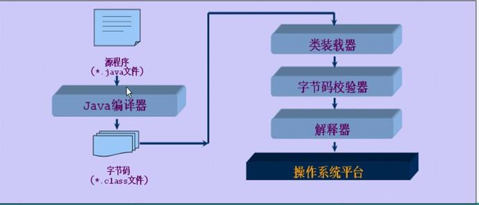 这是Java的编译源代码和运行的过程。如果要编译一个Java程序,首先Java编译器会把.java源文件编译成一个字节码.class文件,