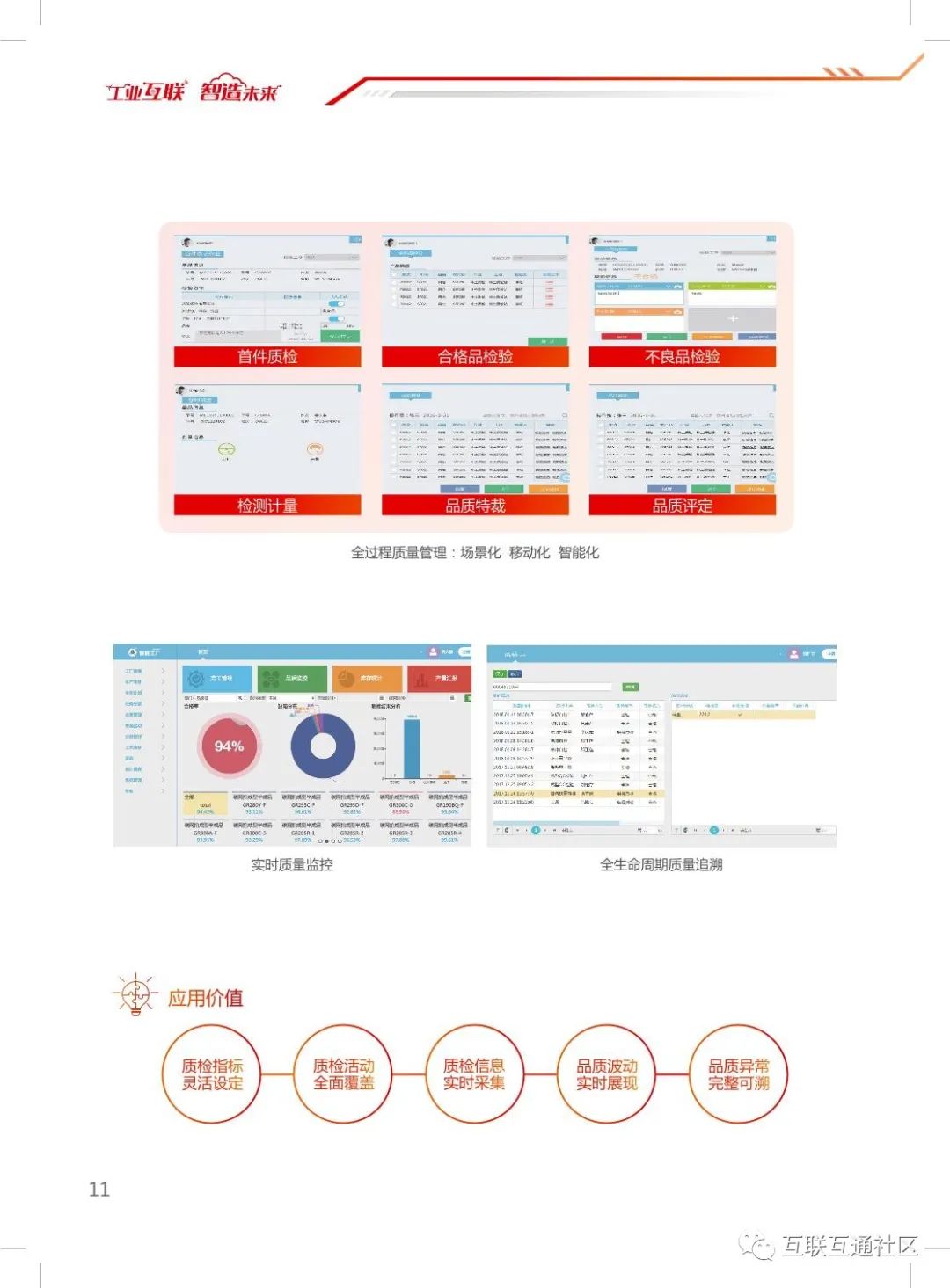 整体解决方案本着“实时现场、移动采集、友好交互、高效记录”的理念,借鉴互联网产品和移动应用 产品的技术架构和开发模式,重点解决离散行业车间现场管理中有关进度采集与监控、品质管理、现场物流 配套、生产过程防错等业务需求,实现车间管理中计划和执行闭环管理以及与之配套的“人、机、料、法、环、 测”等诸多方面的有机整合,助力离散制造业客户向智能化制造迈进。
