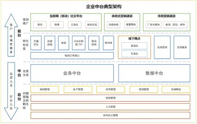 企业的中台转型不只是中台的工作,需要整体考虑前台、中台和后台的协同、共享、联通和融合。