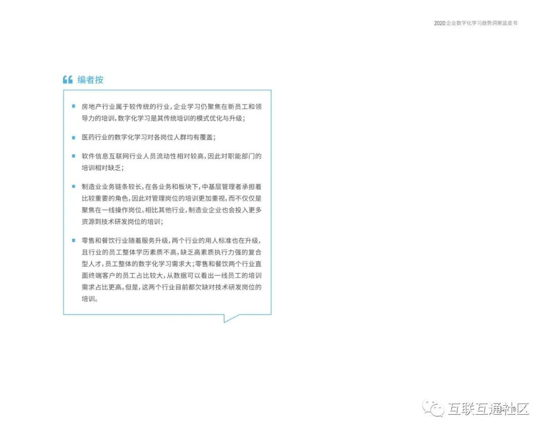 关注公众号:【互联互通社区】,回复【2020企业数字化学习趋势洞察蓝皮书】获取全部报告内容。