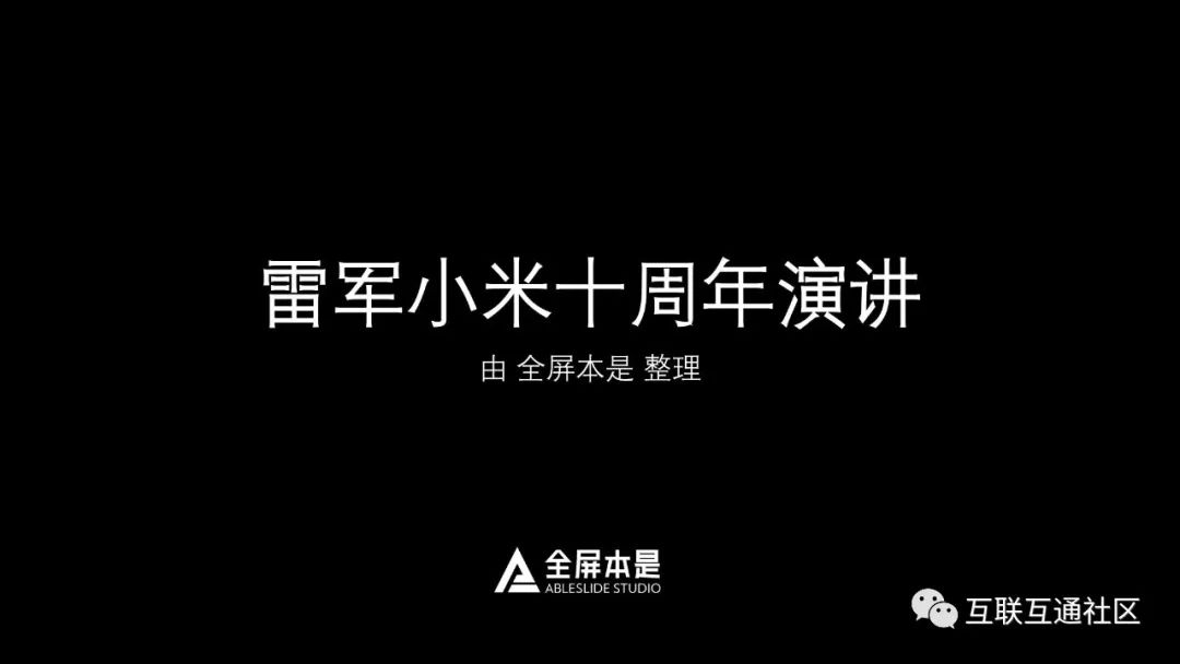 关注公众号:【互联互通社区】,回复【雷军小米10周年演讲】获取全部报告内容。