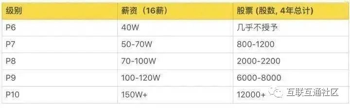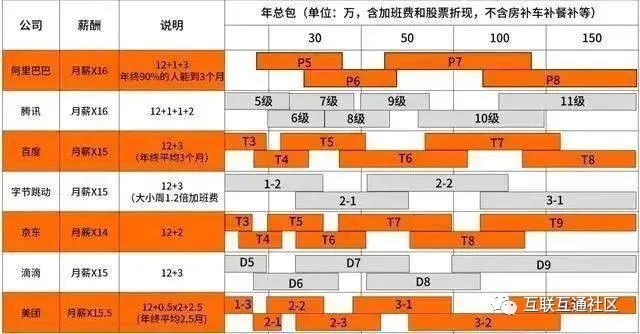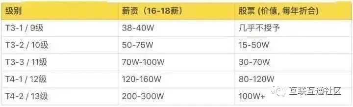 互联网大厂新入职员工各职级薪资对应表(技术线)