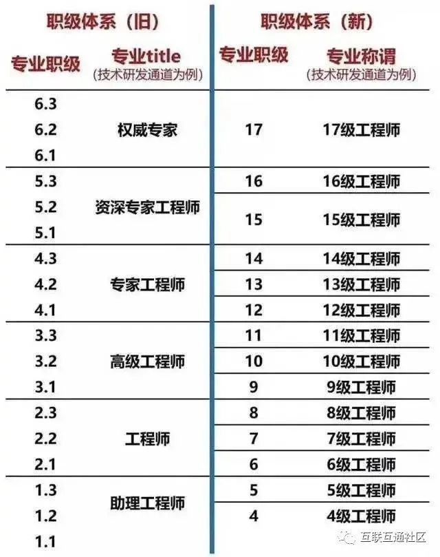 腾讯去年宣布调整职级,取消了原有的 6 级 18 等(1.1-6.3 级)的职级体系设计,将专业职级体系优化为 14 级 (4-17 级)。与之相对应的是,统一置换为“专业职级+职位称谓”。