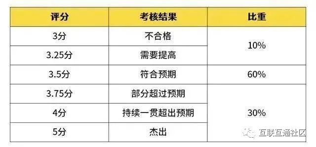 绩效评分标准:百度绩效也为5档——从 1 到 5 ,1 是最好的,5 可能会走走人了。正好与腾讯相反。