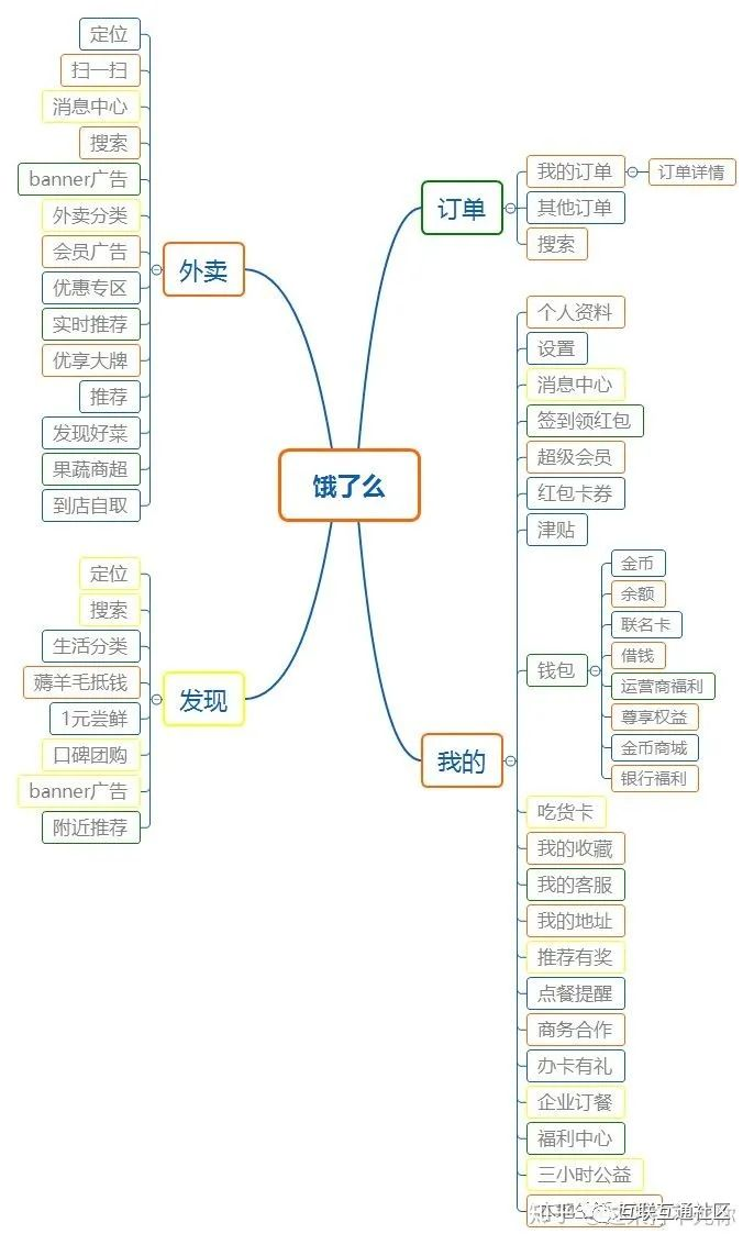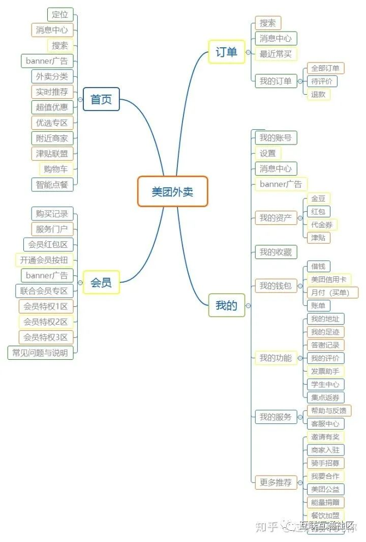 饿了么整体结构由外卖、发现、订单、我的组成,美团外卖整体产品结构由首页、订单、会员、我的组成。