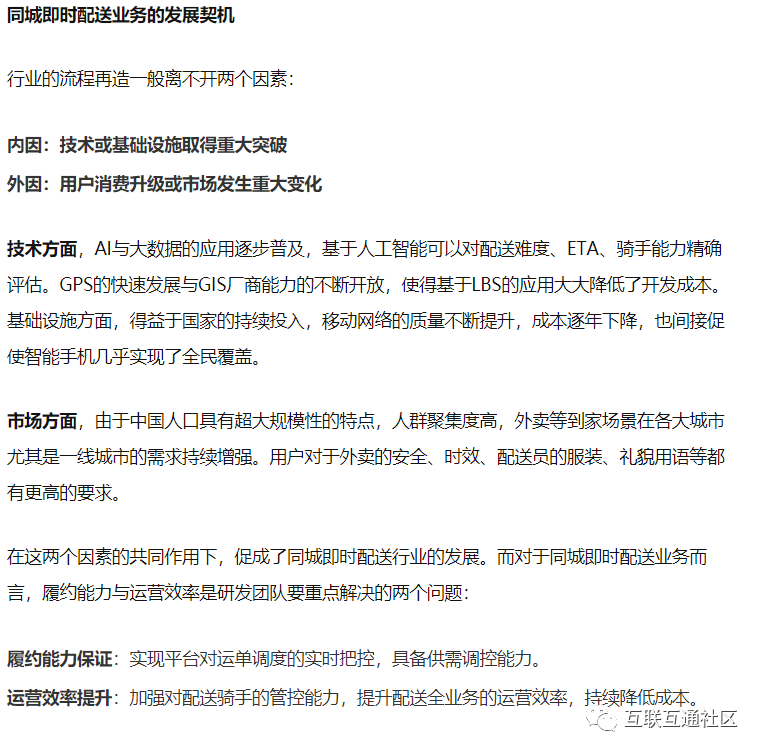 距离短:配送距离多数为3~5km范围,较大的扩展到同城范围。