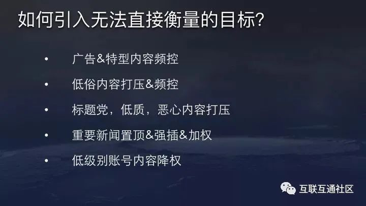 此外,平台出于内容生态和社会责任的考量,像低俗内容的打压,标题党、低质内容的打压,重要新闻的置顶、加权、强插,低级别账号内容降权都是算法本身无法完成,需要进一步对内容进行干预。