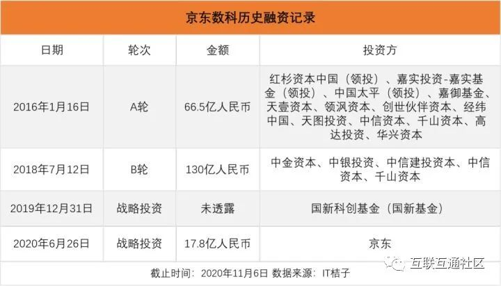 IT 桔子数据显示,京东数科在上市前有过 4 轮融资,总共获得过超过 200 亿人民币的投资。