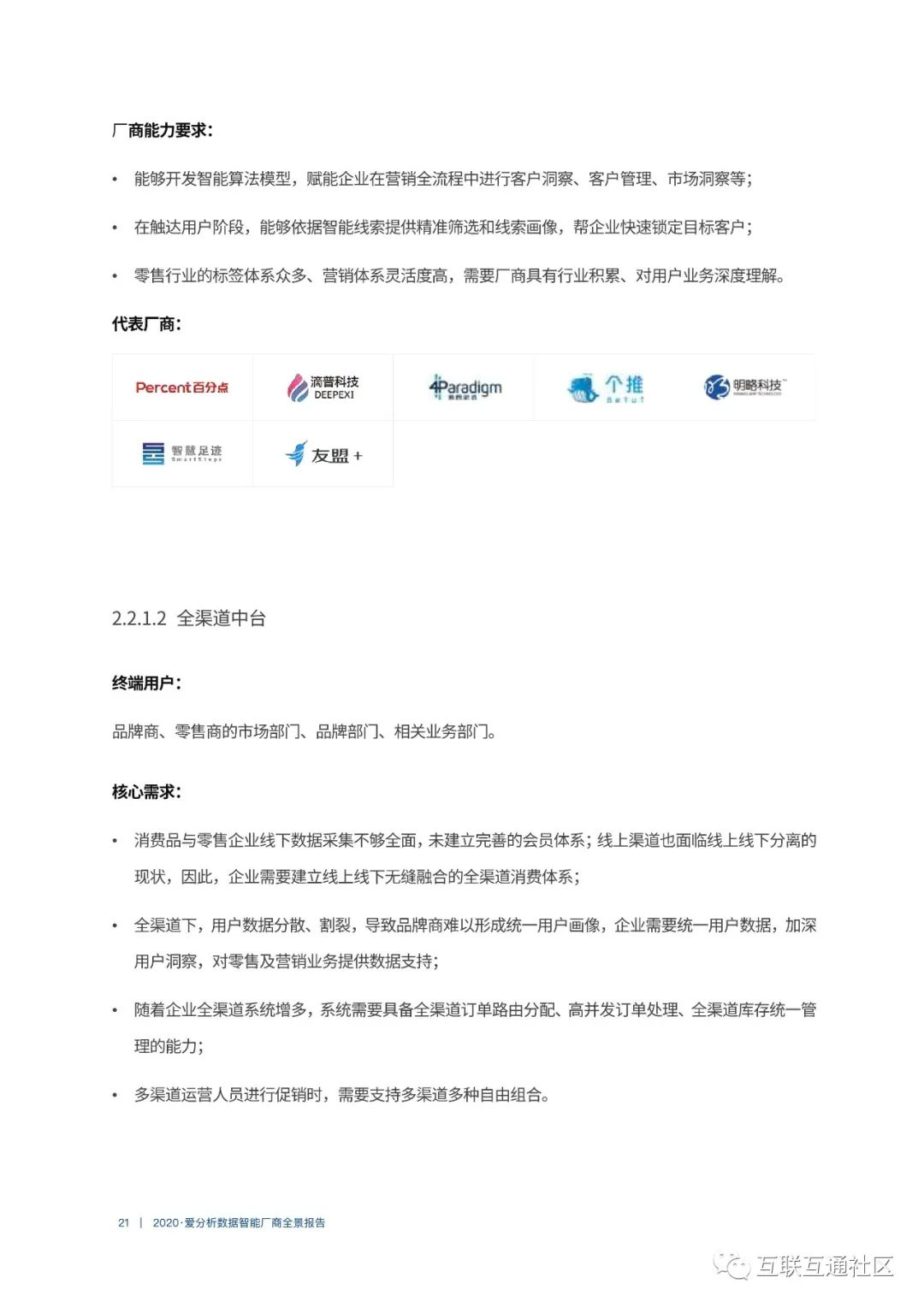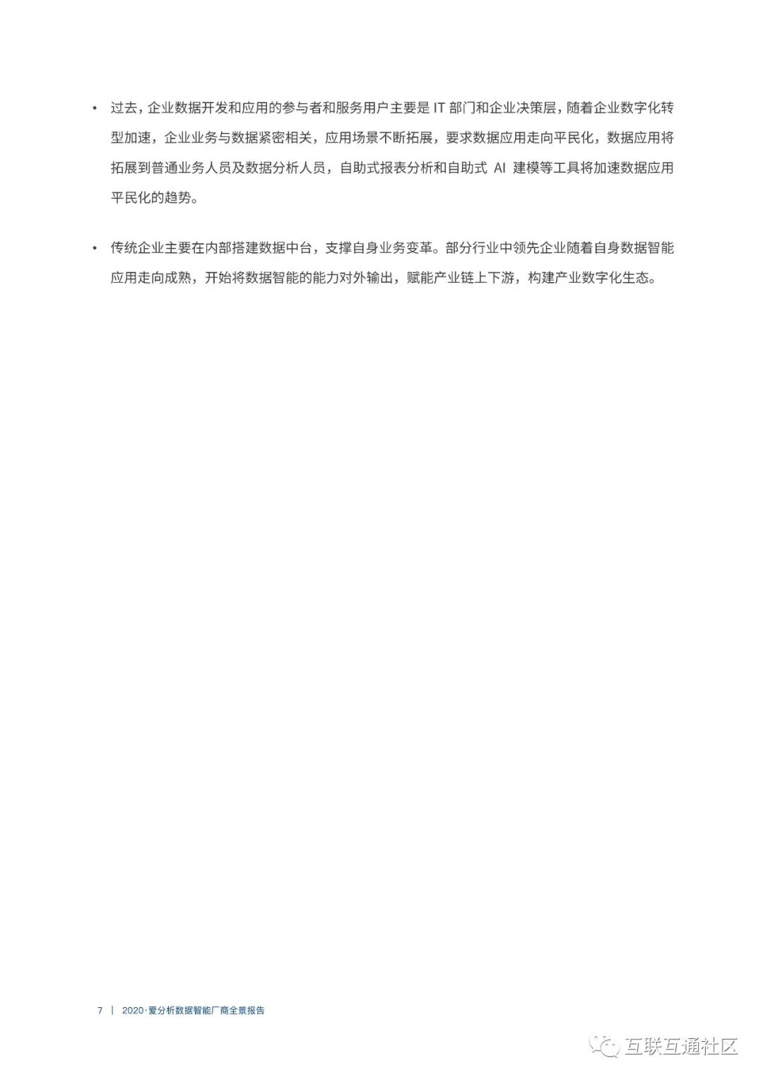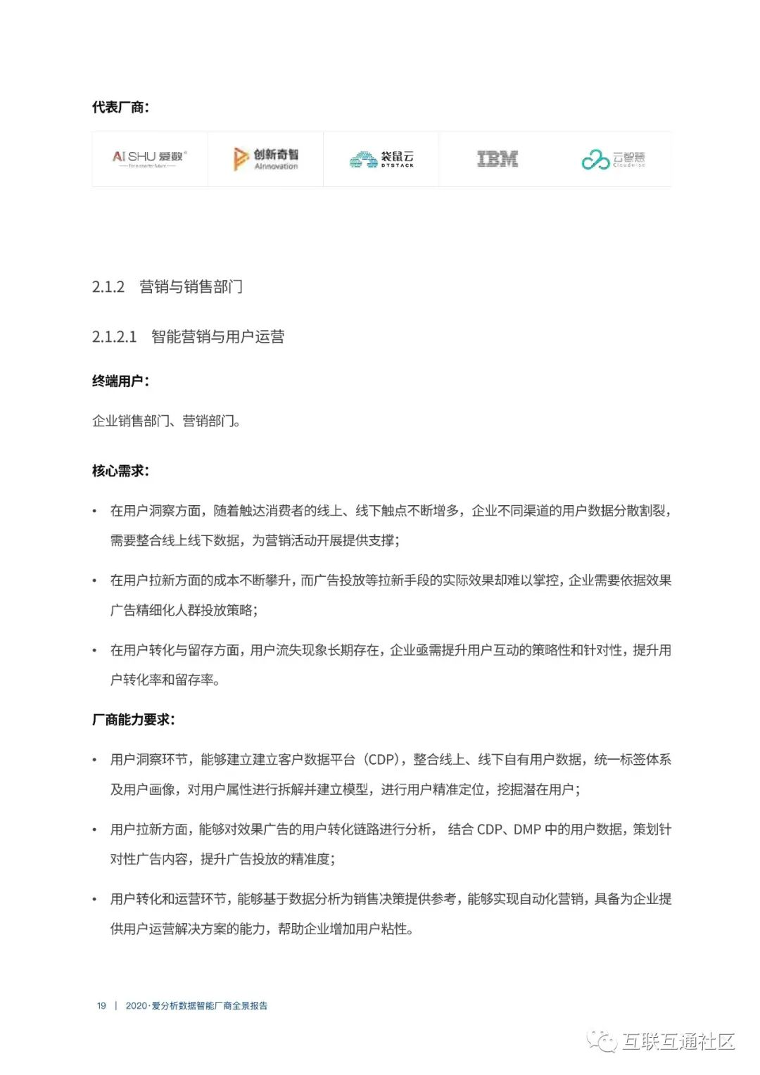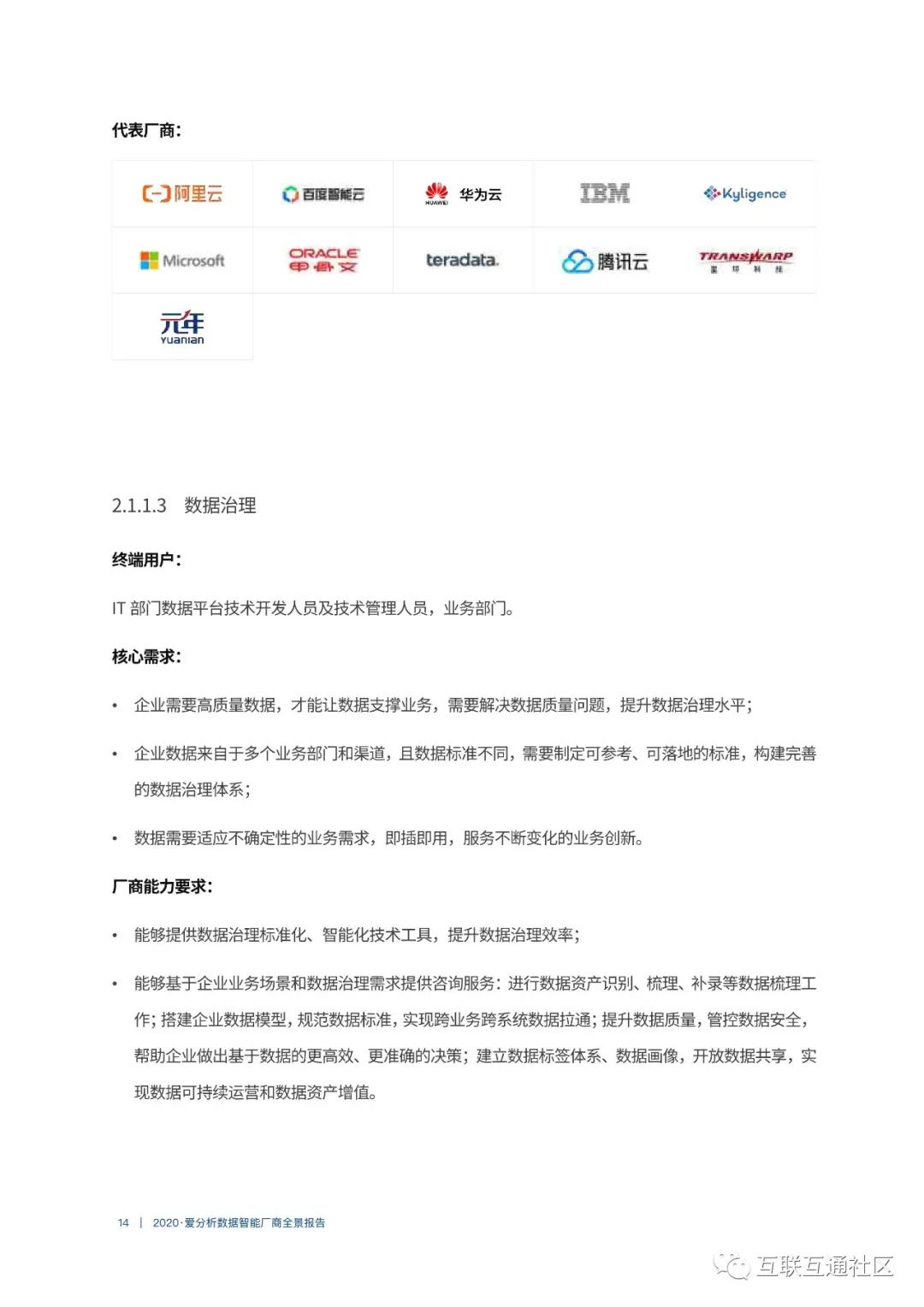 关注公众号:【互联互通社区】,回复【2020数据智能厂商全景报告】获取全部报告内容。