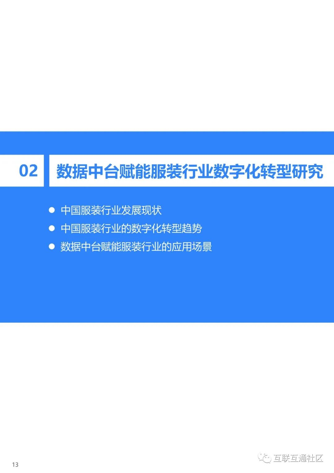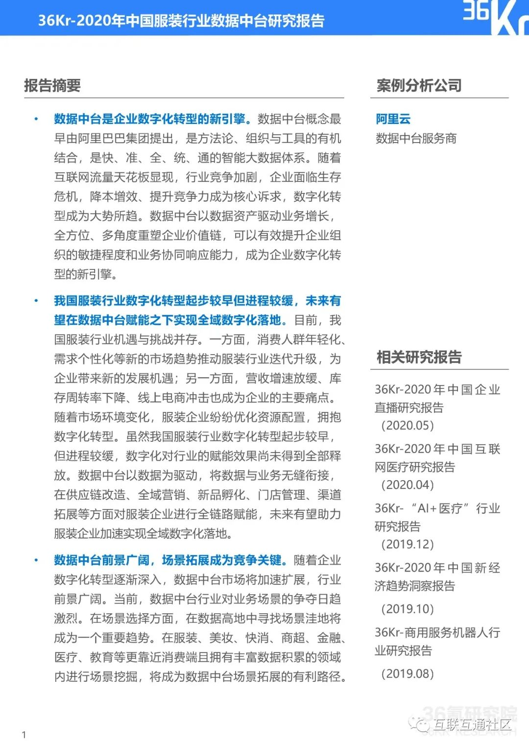 关注公众号:【互联互通社区】,回复【2020中国服装行业数据中台研究报告】获取全部报告内容。