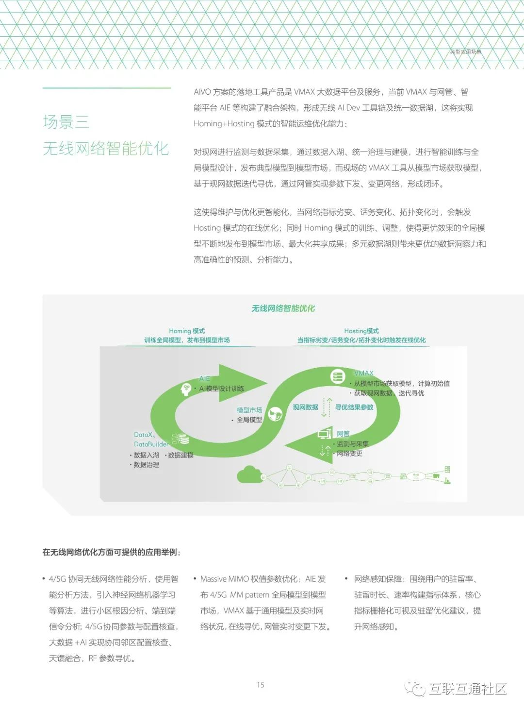 AIVO (AI Insight Value Operation)方案通过构建端到端价值运营体系,实现运营层的 AI 能力注入,助力跨域智能化,对应自主进化网络的十大价值场景中的端到端数字化运营场景,其目标是灵活地满足用户不断发展的运营需求,达到运营价值最大化,支撑智能化运营的持续进化。AIVO 通过将大数据及 AI 技术融合进运营体系,让原本庞大复杂的运营体系变得灵活和高效,从而提升运营商规建维优营各领域运营效率,并按需提供可定制和差异化的服务。