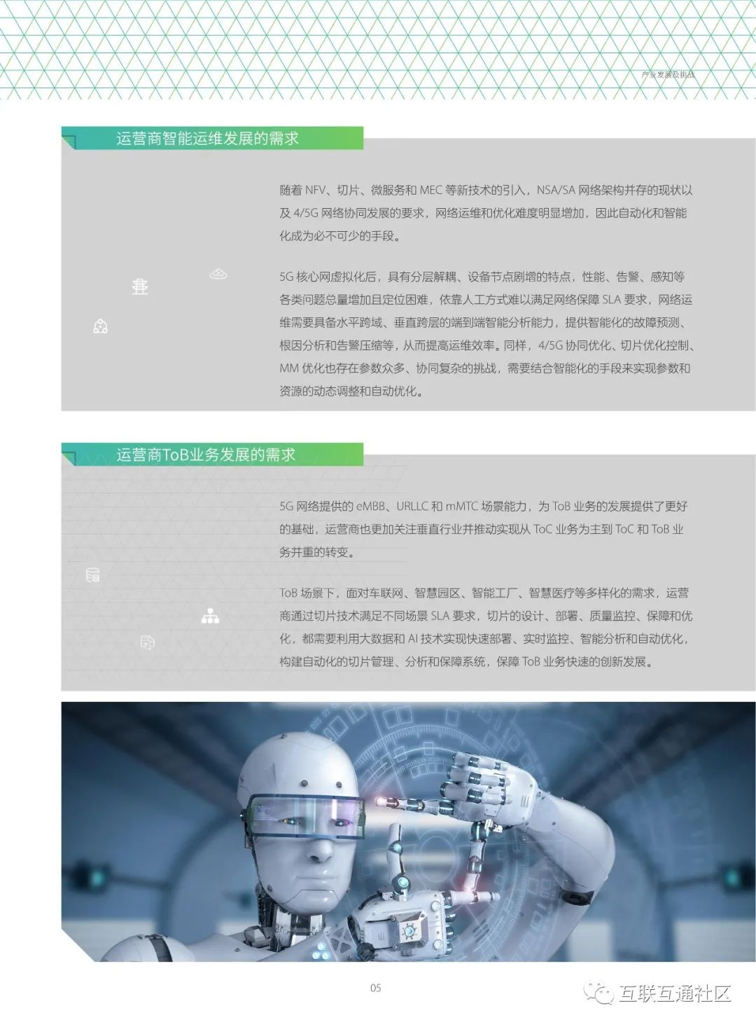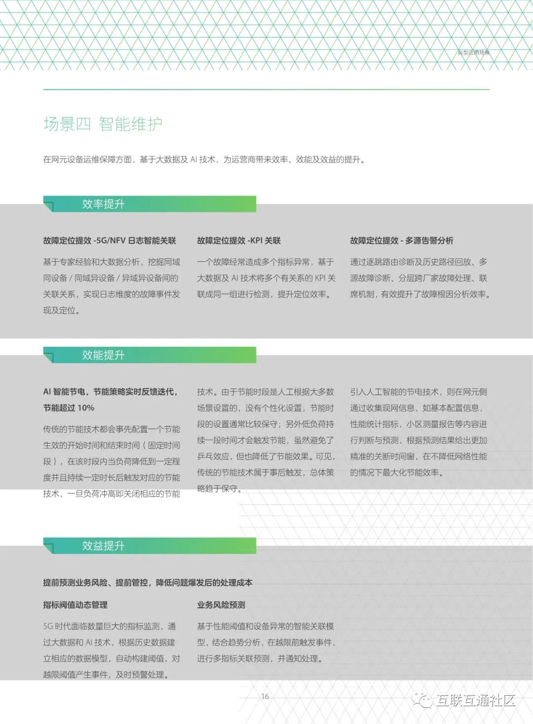 近日,中兴通讯发布了《AIVO数字化运营方案白皮书》,在2017年发布《人工智能助力网络智能化》白皮书的基础上,于 2018 年发布了《5G 网络智能化白皮书》,提出将 5G 网络部署作为 AI 与 5G 结合的切入点;2019 年中兴通讯首次提出了“自主进化网络”解决方案,以泛在 AI 推进 5G 整网的智能化,赋能网络全面进化;2020 年中兴通讯进一步丰富“自主进化网络(uSmartNet)”的内涵,围绕十大价值场景,深入实践自主进化网络演进之路。